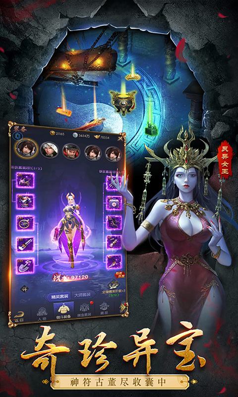 2021国民级盗墓手游,1人操控5角色险夺传说法器,放置护肝不氪金!游戏从众多典籍中提取盗墓元素,分金定穴、点烛开关、机关解密等盗墓元素一应俱全;地穴、雪山、荒漠等场景经典还原,通过十六字风水秘术探索于其中;拨开重重迷雾,找到龙穴所在并挑战大粽子,发掘珍奇古董和绝世装备;建立摸金宗门,带领众人逃出生天。