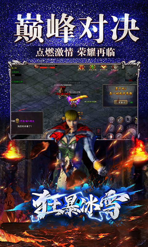 《狂暴冰雪》随时都能在线PK的高人气传奇手游,畅快厮杀竞技,延续经典玩法,杀敌爆装,使你们的对战变得更加刺激,万千玩家同屏激战,全新升级优化后的游戏系统,保证流畅运行不卡顿,超清细致的游戏画面更是令人仿佛身临其境,真实火爆的战斗体验,沙巴克的兄弟们一起来跟随大哥战斗吧,一起来消灭敌人,游戏的设定场景非常宏大壮观,游戏音质更是清晰,有着超强的游戏带入感