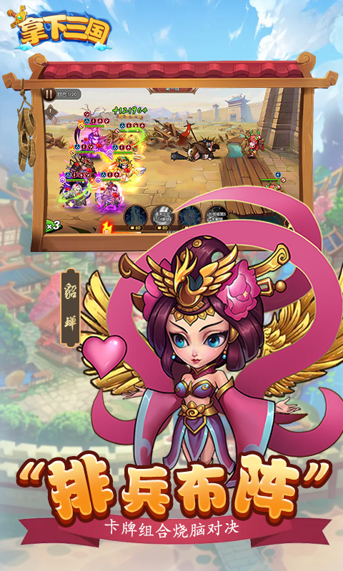 《拿下三国》是一款Q版策略卡牌对战类手游,游戏画面精致,操作顺畅,玩法丰富,奖励多多!带你重回三国天下,武将叱咤乱世,群雄大乱斗,乱世起,豪杰出!