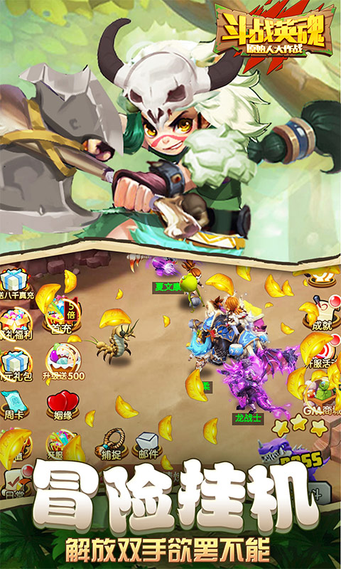 《斗战英魂》经典石器回合制手游,携10000元真充壕礼福利来袭励! 以英魂之心,守护部落之名,斗战英魂-GM送真充版本火热开启!首日升级送500元充值,登录再送8000真充,免费激活全GM特权。开局送VIP12,首日免费直升VIP18,为您打造全新的石器手游体验!人气大作轻松上手,无尽征程,热血荣耀,这一刻火力全开,唤醒你的战斗战英魂!!