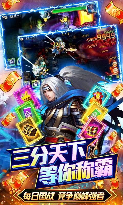 《三国大亨-零氪送万抽》1V1跨服争霸赛火爆开战,三国王者巅峰对决!作为一款三国攻防战略手游,《三国大亨-零氪送万抽》颠覆传统策略游戏玩法,集合卡牌、养成、塔防、战略等多个元素打造掌上三国超爽策略战场!阵容搭配、城防建设、资源掠夺、跨服PK真实还原三国沙场烽火连天!想要成为三国霸主吗?赶快放马来战吧!【行军用兵!阵容搭配谋略制胜】收集历史名将,精准培养!兵种相生相克,巧妙搭配!百变阵容轻松秒杀全场!【跨服战场!智能匹配对战】1V1、5V5,智能匹配,快速开战。团战、国战,进攻防守,跨服群战。【资源爆仓!多个维度发展国家】城池经营、城防建设、兵将培养多个维度发展国家。百姓税收、材料征收、矿坑争夺等多个玩法获取资源,使游戏更具趣味性和挑战性,经典三国角色悉数登场,特色剧情原味还原,还等什么?赶紧来抒写属于自己的三国传奇吧!