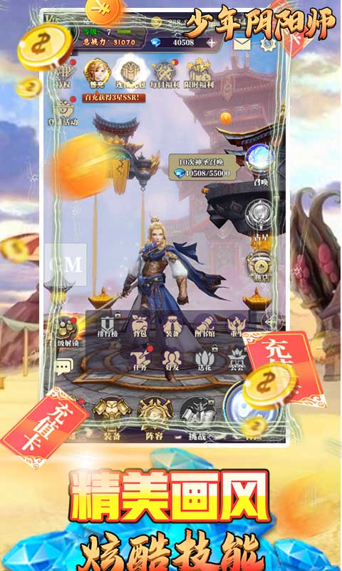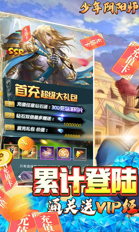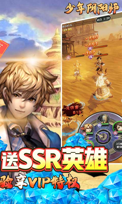 《少年阴阳师-式神之战》是一款奇幻的冒险卡牌游戏,画面表现精美,战斗系统独特,玩法创新,招式特效酷炫!自动挂机功能让你解放双手。通关送vip经验,享vip特权。登陆还送SSR英雄,打造你的SSR军团!快来与我一起踏上冒险旅程吧!