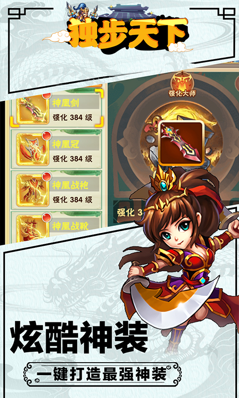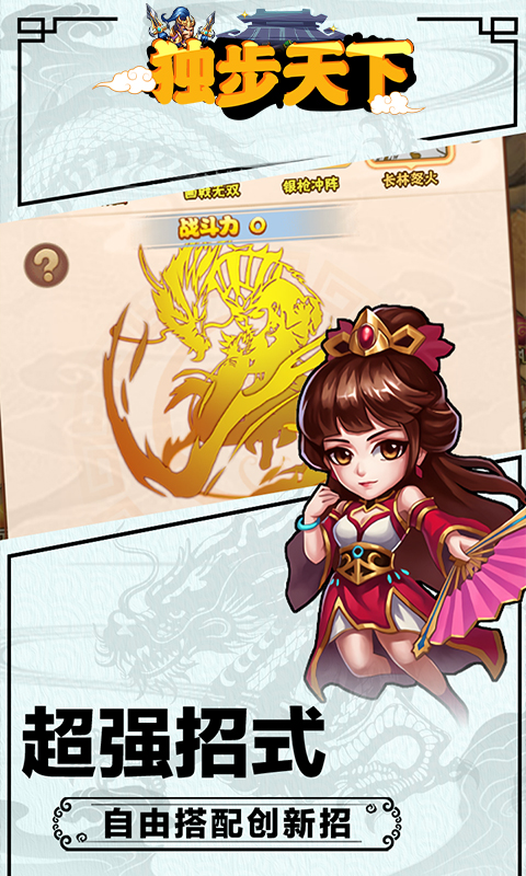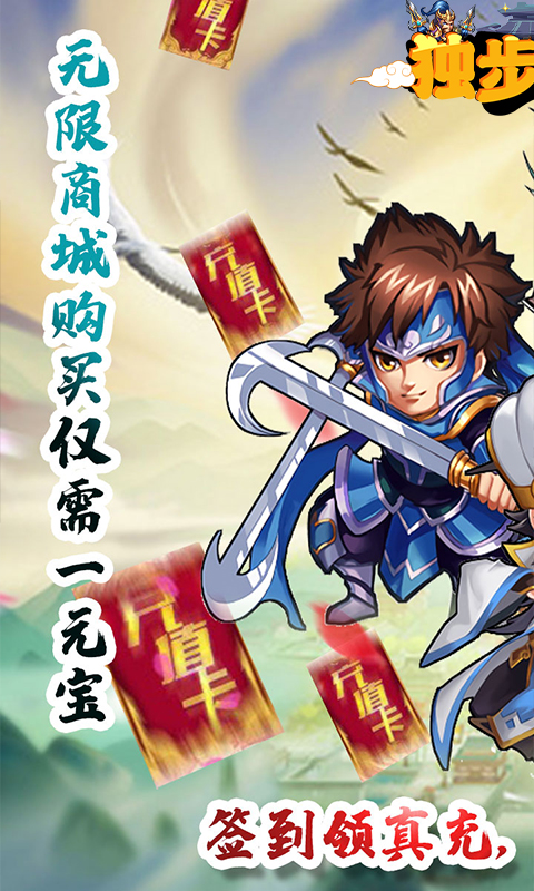 《独步天下(真充代金券)》是一款三国背景和Q版的人物角色造型的策略卡片类游戏。玩家不仅可以招募三国名将共同征战沙场,还可以烧脑策略组团打BOSS,攻城略地加冕称王,个性化的武将养成、多种副本玩法和PVP跨服PK,再现三国战场。