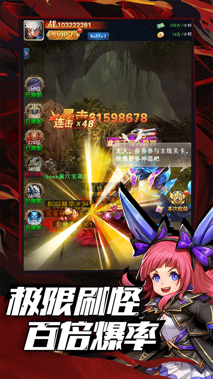 《异界深渊:觉醒》是一款全新的集挂机休闲和PVP于一身的魔幻风ARPG手游。 一场突如其来的变异让大陆陷入疯狂,大陆上的冒险家们已重新集结!暗影迷 宫、炼金矿场、地精暴动~~各方势力蠢蠢欲动,这是一次关于觉醒的深渊攻坚战。