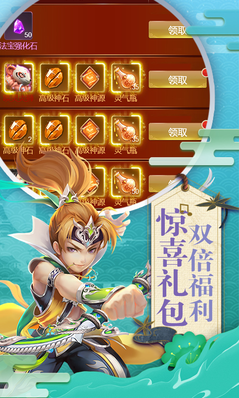《六界仙尊(充值无限返)》三职业玩法,解锁新角色战斗力直接暴涨2倍。全新福利来袭,线下每天首笔充值返真充卡,最高返15倍。开局5倍充值返利,升级还送大量元宝,还有神器免费领取。签到即送炫酷称号,时装,极品神器全部免费送,每天登录领豪礼。 有着丰富的装备系统、时装系统、技能系统等多重精彩功能,拥有庞大的道具体系和精炼系统,并且有丰富的参考上古神话的任务剧情背景 ,配合美轮美奂的游戏画面,让玩家在激烈的战斗中,倍感一份轻松。