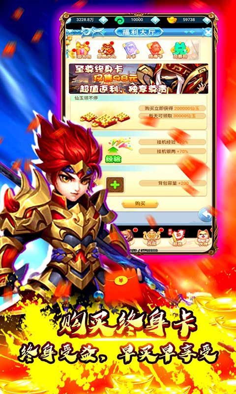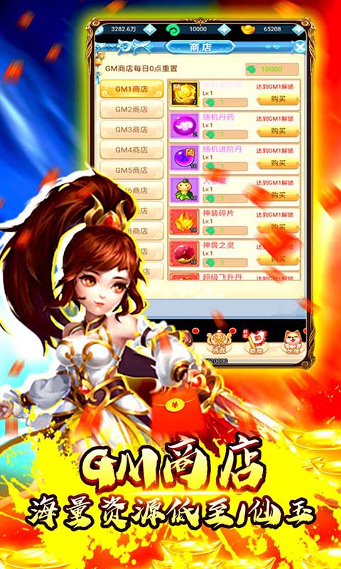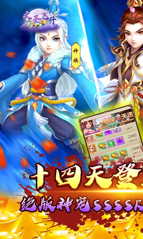 《大圣飞升(GM商城)》是一款以西游题材的放置回合制游戏,登录上线即送VIP17,以及海量资源。游戏主打挂机、休闲、自动、养成等元素,百变特色时装、称号、众多坐骑、背饰、法宝、神兵幻化,炫酷无敌,让你身临西游时代,创造自己的辉煌。