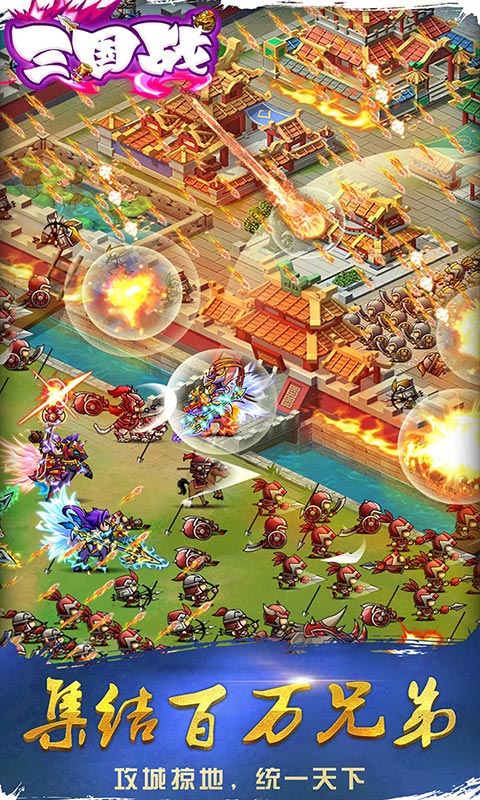 这是一个Q版风格建立在一个以三国世界观下的大型沙盒战争策略游戏。类似现在市面上主流的COK。以经典的策略类游戏SLG为核心玩法,同时加入了大量卡牌游戏的推图和卡牌收集的游戏元素,为玩家营造一个战火不断的三国世界。玩家将扮演三国时期的城主,生产战略资源、笼络名士猛将、征召百万雄兵参与到十三州的领土争夺中。