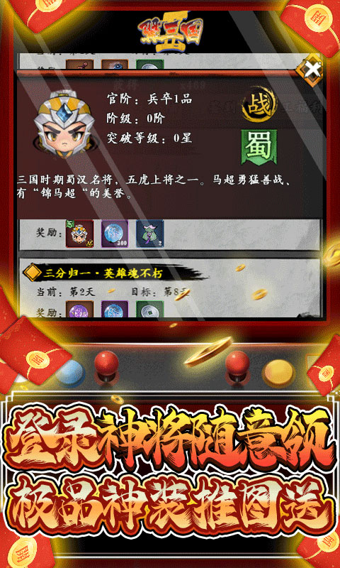 《翼三国2(在线红包雨)》采用怀旧像素画风,带你重温童年时期淳朴简单的游戏体验。游戏内包含多种阵容搭配,丰富的日常活动玩法。更有独家福利万元充值卡助你过关斩将,征战三国。游戏风格轻松休闲,容易上手,丰富的养成元素能让人体验到无穷的冒险乐趣。
