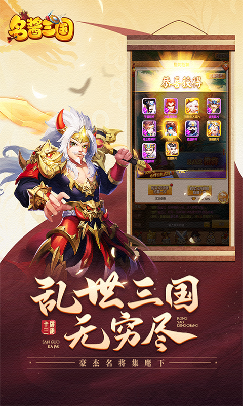 《名酱三国》以为三国背景,重现经典回合战斗模式,游戏各路猛将尽数登场,造型精美英姿重现。更有丰富多变的养成系统,培养心仪神将,玩家能亲身参与调兵遣将与其他玩家争霸三国之巅,完成一统大业!