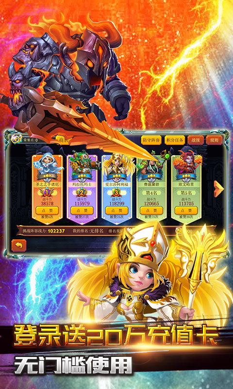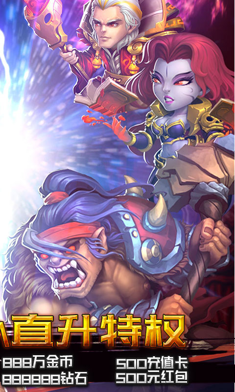 这一款超人气卡通魔幻风格的卡牌游戏,传承卡牌手游精髓玩法。上线送888888钻石+888w金币+千元充值,海量福利开局。累计登陆再送20万元的充值卡,无门槛可以使用,让你体验土豪的感觉。七日登陆每日送GM特权直升卡,GM商店稀有道具1钻购。战斗新体验,开启爽快的激斗新感觉,最强英雄之路,等你来谱写!