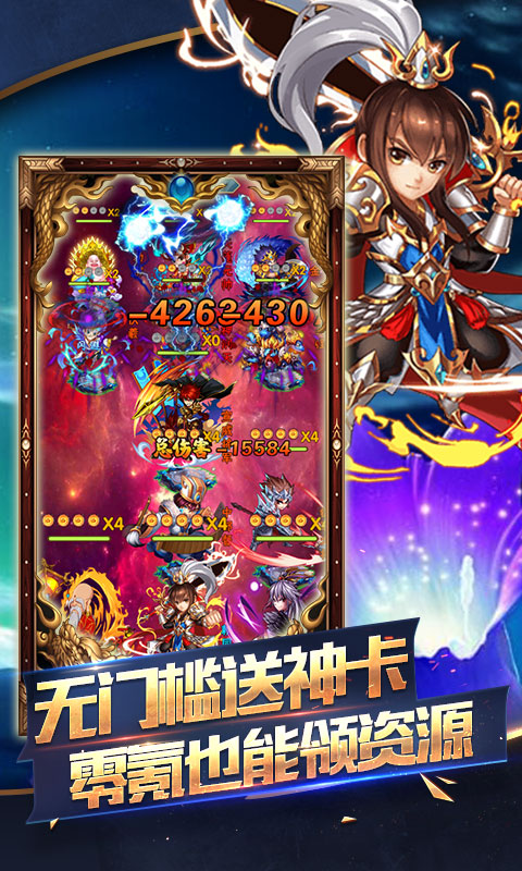 以西游为游戏背景,玩家组建属于自己的队伍,共同对抗黑恶势力,上阵卡牌全加成,激情乱战享不停,私人定制称号,尽显尊贵,无门槛送神卡,豪华福利享不停,0氪也能玩到爽,上线千元真充,白嫖元宝,核心道具随心购买,尊贵特权免费领取,快来组件属于你的西游队伍吧!