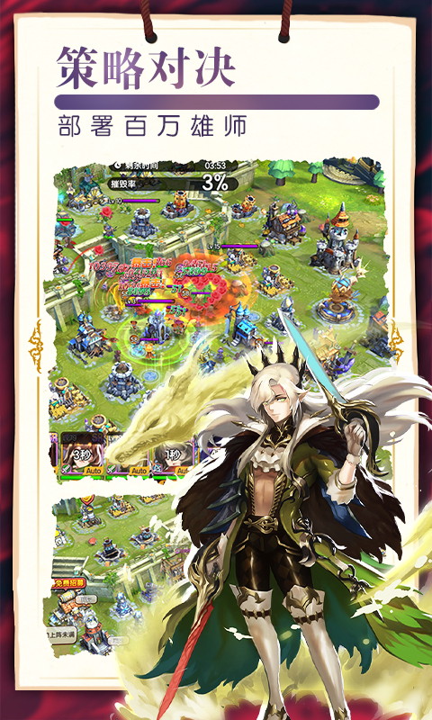 《进击吧三国》是一款穿越战斗题材的幻想风轻战略三国手游,在游戏中玩家意外被召唤到一个不同寻常的三国世界,以打败魔王张角,拯救天下苍生为目标,招募强力的三国神将组成自己的军团,征战世界收复失地,同时建设城池,与其余玩家交互对战,一步步成为强大城主。