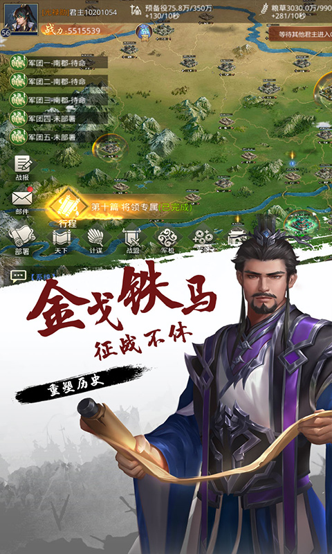 一款融合日常休闲策略玩法与小局制多人对战攻城的战国策略游戏,独特设计的战斗机制与攻城机制,可轻松搜集历史名将,与多人对战,攻城略地乃至一统天下,提升官职,封王称帝。