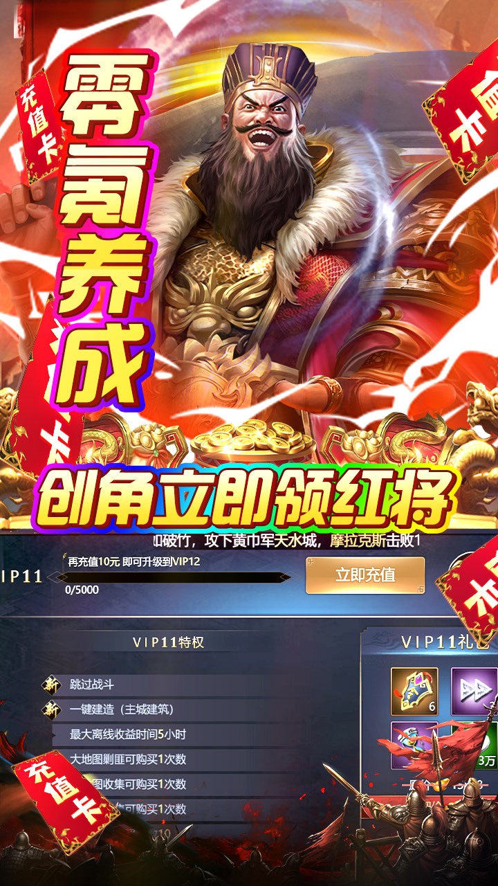 这是一款三国题材放置挂机与战争策略结合的游戏。 游戏玩法虽然休闲,容易上手,但是节奏却很紧凑,内容却很饱满;玩家很快就能体验到独霸天下的快感;特色玩法,特色养成,忠于历史,还原三国;四方阵营,八路英雄,排兵布阵,领兵作战,让您感受一个逼真的三国权倾天下;征战天下或者独守一方,一切由你说了算!与人战,与城争,攻城掠池,还是休养生息,一切皆由你做主!
