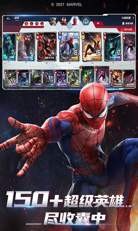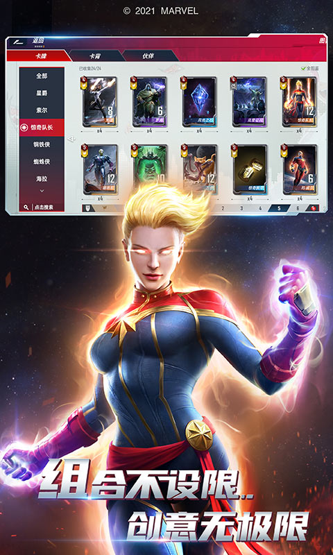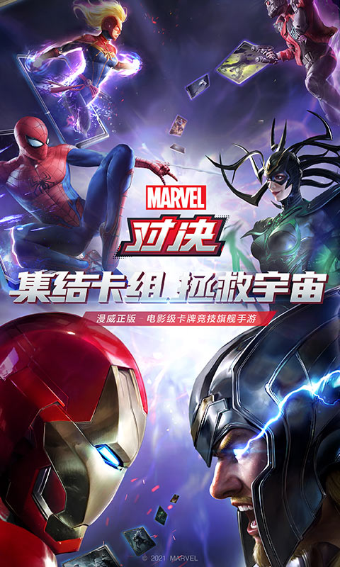 集结卡组,拯救宇宙!漫威正版 - 电影级卡牌竞技旗舰手游《漫威对决》重磅来袭!数百名漫威宇宙中的角色集结于此,由你亲自组合搭配,运用策略构筑阵容,在《漫威对决》中展开一场激烈畅快的卡牌对决!