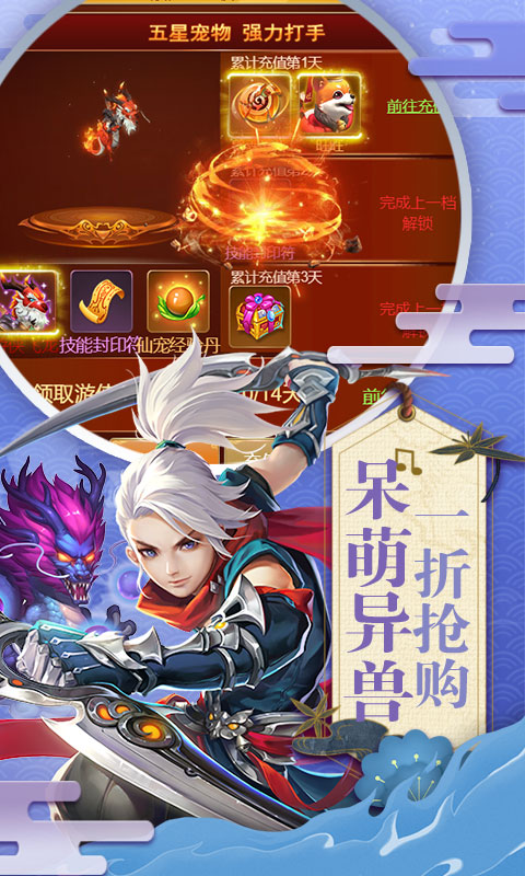 《六界仙尊(送10倍真充)》三职业玩法,解锁新角色战斗力直接暴涨2倍。全新福利来袭,线下每天首笔充值返真充卡,最高返10倍。升级还送大量元宝,还有神器免费领取。签到即送炫酷称号,时装,极品神器全部免费送,每天登录领豪礼。 有着丰富的装备系统、时装系统、技能系统等多重精彩功能,拥有庞大的道具体系和精炼系统,并且有丰富的参考上古神话的任务剧情背景 ,配合美轮美奂的游戏画面,让玩家在激烈的战斗中,倍感一份轻松。