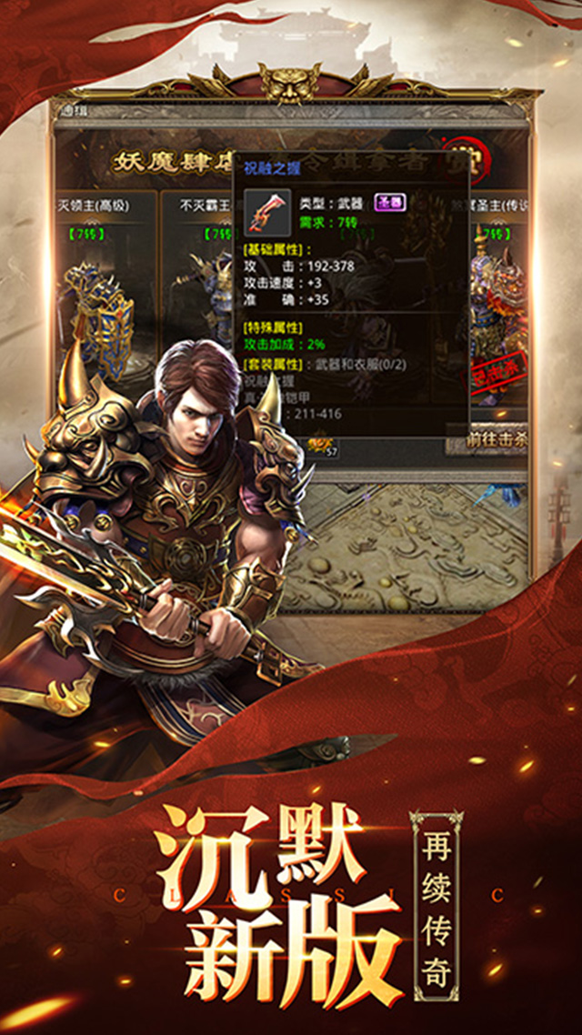 《决胜苍穹》手游是一款单职业打金特色游戏,经典特色版本“我本沉默”的全新正版传奇手游,游戏在延续了经典传奇的热血攻沙、挖矿打宝、打怪爆装等复古玩法的同时,还复刻了“我本沉默”版的独有特色。寂静之地,秦皇陵,水上世界等特色地图完美重置;破棺剑,绿玉屠龙,诅咒王,域系套装等独有装备炫酷归来!神技高爆,休闲打金,极爽体验,再续传奇!沉默新版,带你回到最怀念最爽快的传奇时代!