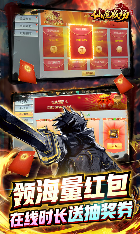 新一代国民级古风仙侠必备手游巨作仙魔战场(送刷充红包),绝美仙侠酷炫3D画面,武侠修仙精髓。上线即送六大系统进阶大礼包,88888元宝。侠骨柔情,仗剑江湖,上线即送SVIP12,每日登录都送红包,累计活跃可送特权神卡!精美3D玄幻修仙MMO玩法,数百种酷炫魔幻技能让你嗨个不停,MoBA画面如入仙境,BOSS狂爆元宝红包,,还送全套时装,斗仙斗法与仇人一决高下吧!