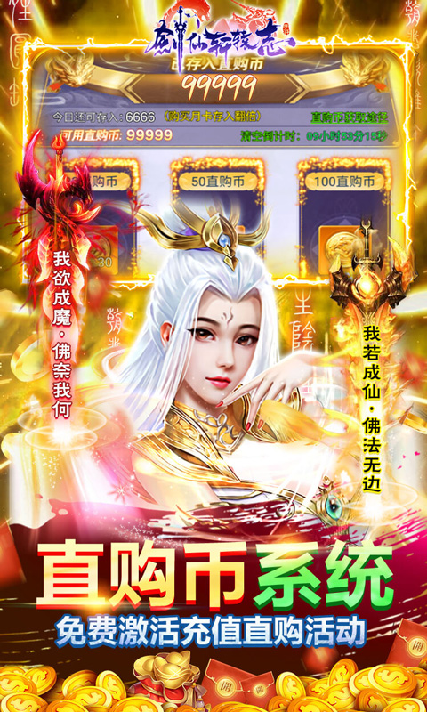 《剑仙轩辕志(送地藏50W充)》是一款唯美修仙挂机类手游。来就送满V,挑战闯关免费赠送神级伙伴:魔化地藏,3天登录免费赠送最强伙伴:魔化吕布。倒计时红包天天领真充,策划小弟承诺保底可领50万真充!独特创新颖玩法,招式畅爽的多人对抗战斗,组队修仙,二人双修、应有尽有!收罗全仙界时尚搭配外显唯美仙装、修魔神器。道友选择魔道还是仙道?等待道友的仙途开启。丰富社交的玩法,又能轻松玩儿虐待boss又能带飞漂亮mm,岂不美哉!